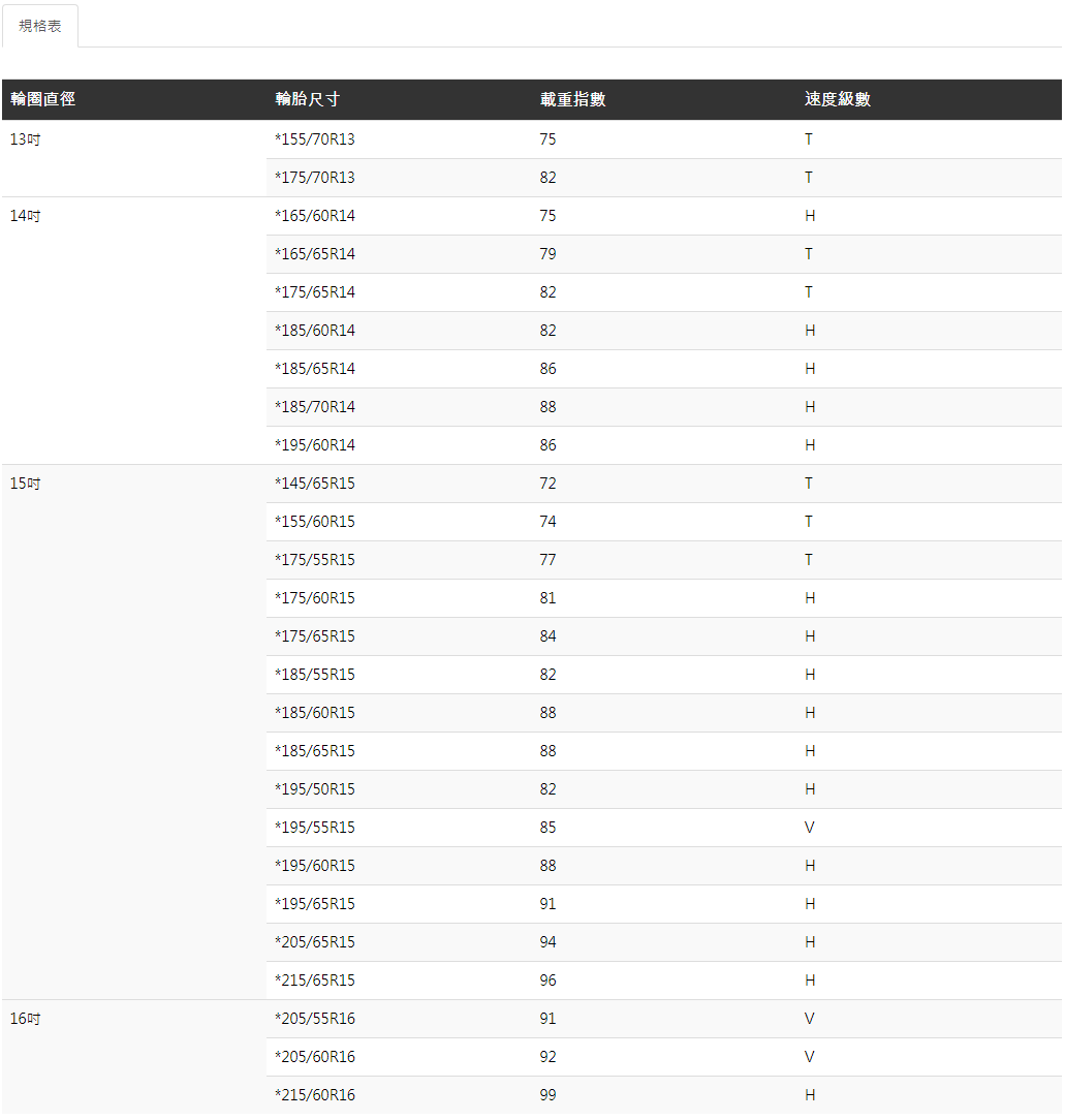 * 節能輪胎標籤詳細規格請見經濟部能源局車輛能源應用技術網站