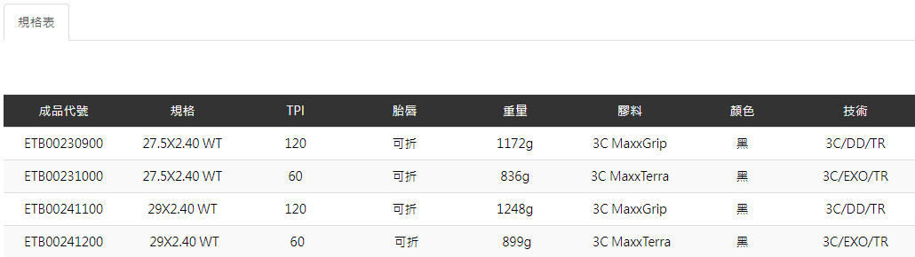 ●適用於乾燥、速度型林道騎乘 ●搭配MAXXIS 3C MaxxTerra和MaxxGrip膠料配方 ●大寬幅胎體結構設計,使其更適用於內寬30-35mm之輪圈。